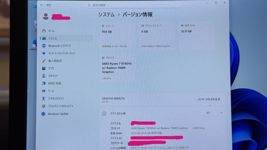 正直、私が普段使っているメインPCよりも速いんじゃないかな?って感じるくらい、動作が異常にキビキビしています✨ Ryzen 7 8745HSと32GBメモリのパワー、伊達じゃないですね……!