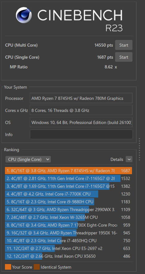 かつての自作ハイエンド、**当時30万円もの費用をかけて作り上げた私のメインPC(i7-8700K)**と、今回の最新ミニPC(Ryzen 7 8745HS)のガチンコ比較です💕