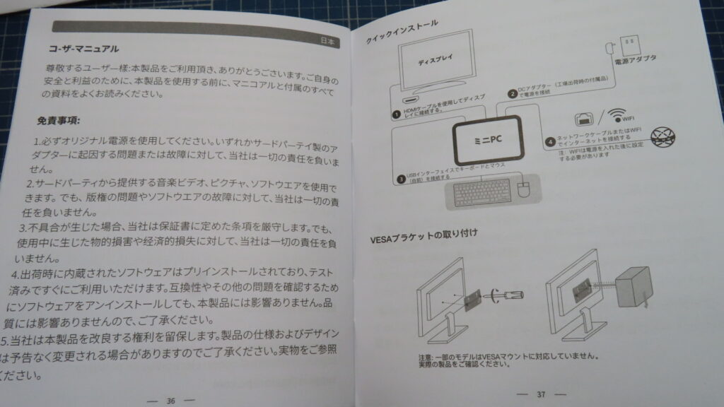 説明書はシンプル!でもVesaマウント対応は嬉しい💕