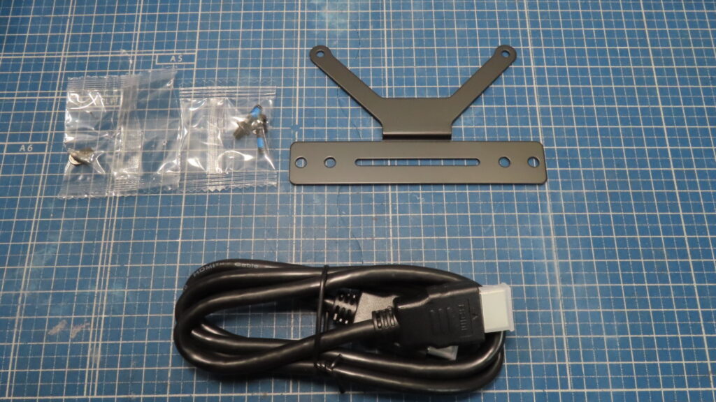 本体の他に入っていたのは、HDMIケーブルと、モニターの背面に固定するためのVesaマウントでした✨