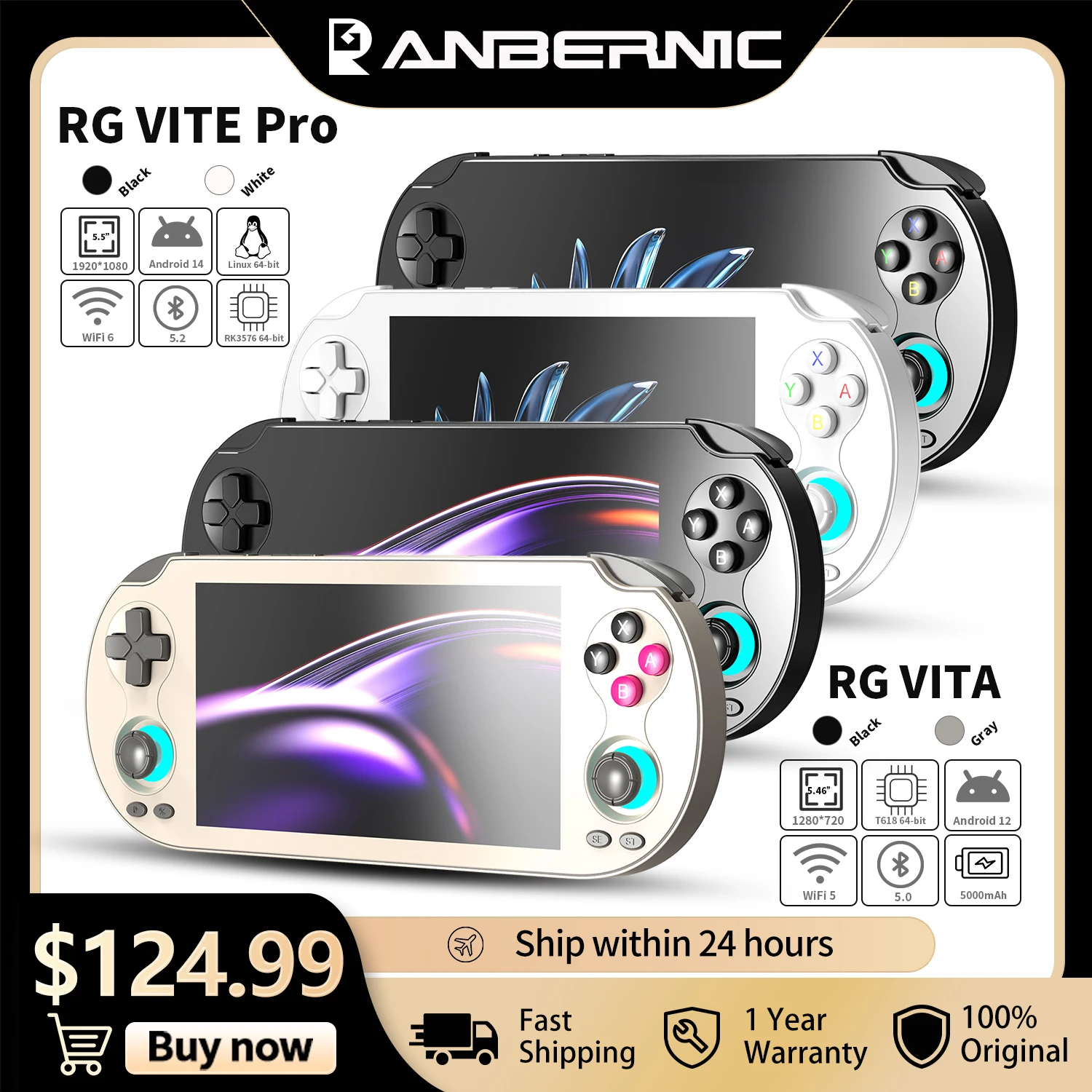 ANBERNIC RG VITA RG VITA Pro レトロハンドヘルドゲーム機 5000mAh WiFi Bluetooth ビデオゲームプレーヤー AIストリーミング対応 RixelHK - AliExpress